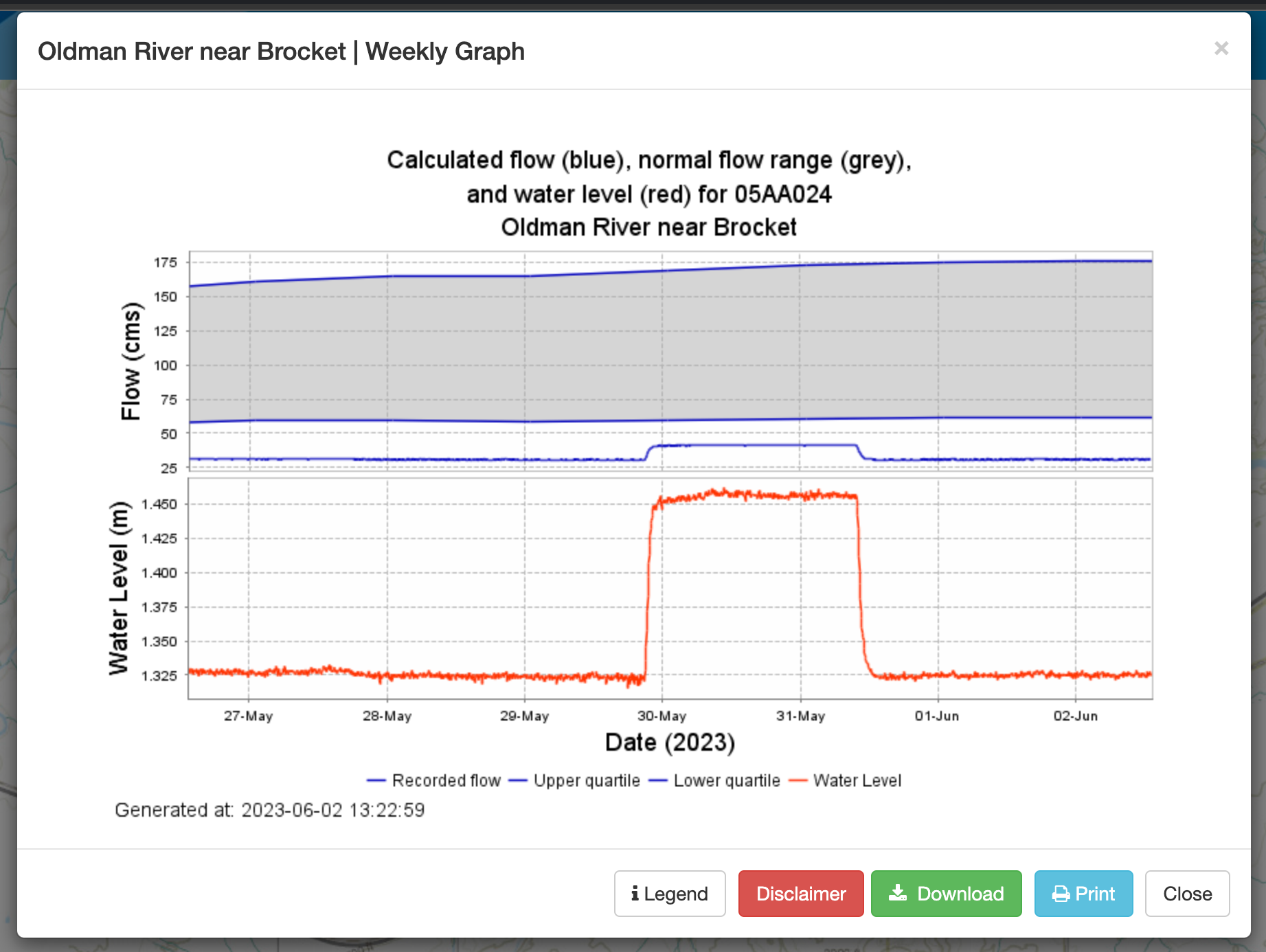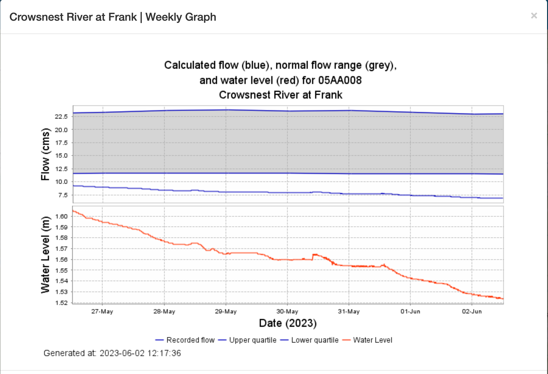 As you can see we have quickly fallen out of the normal range of flows on the Crow and are also below normal flow levels on the Tailwater.
